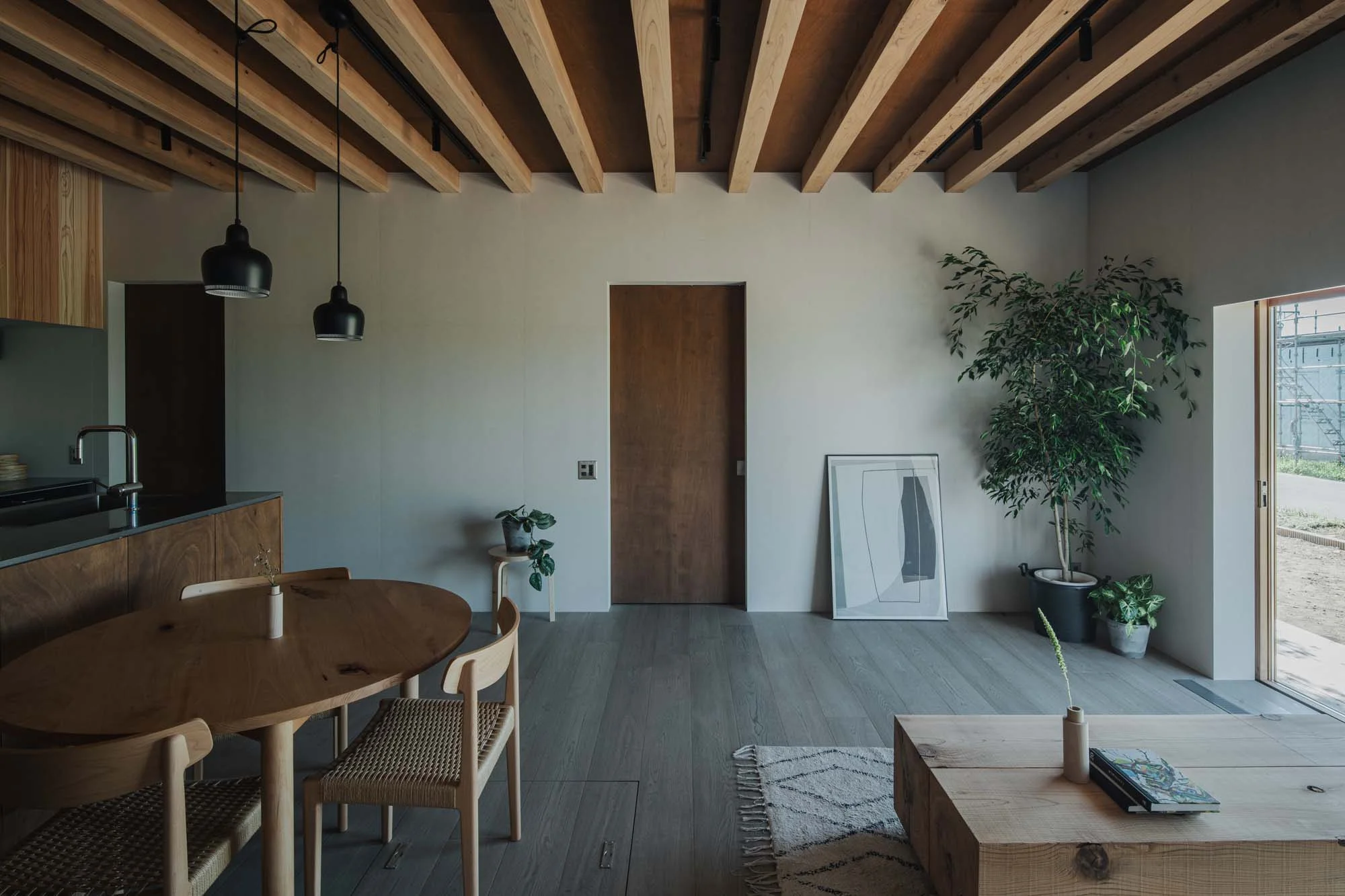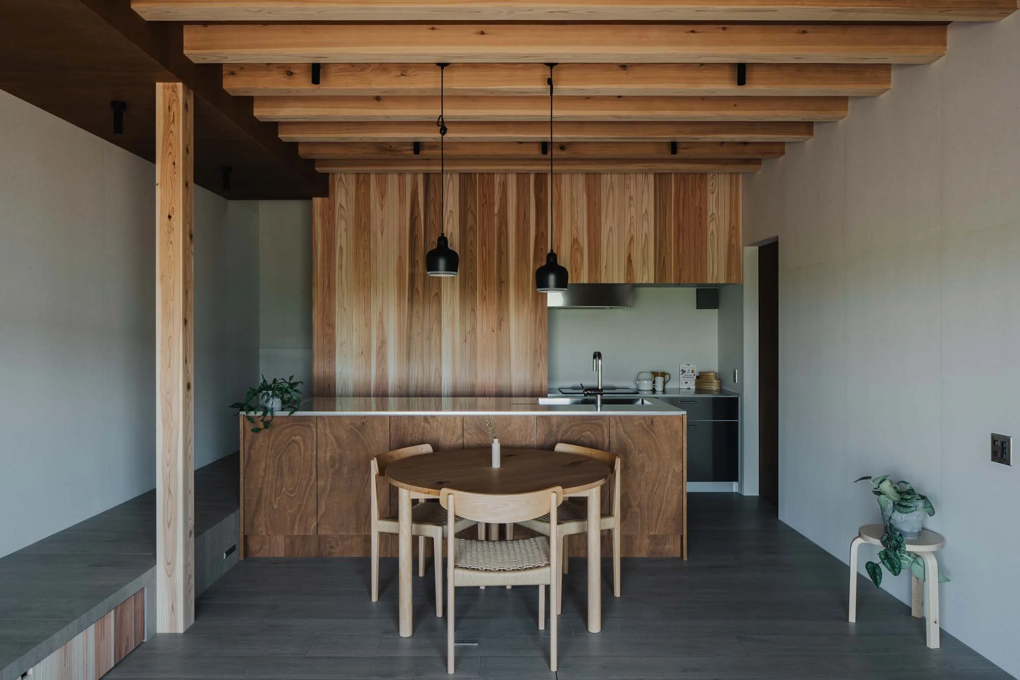 自然を感じさせるミニマルなインテリアと既存の木造住宅を踏襲しながら近代的な暮らしへアップデートされた空間。木々の香りを感じながら、住まう人、訪れる人を癒してくれる小屋をかたちに。